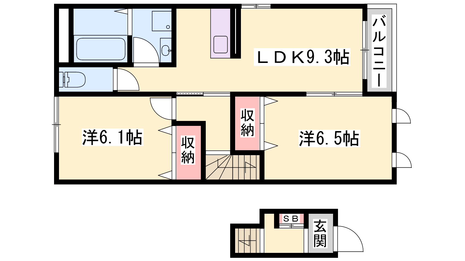 - LDK9.3帖、洋室6.5帖、洋室6.1帖