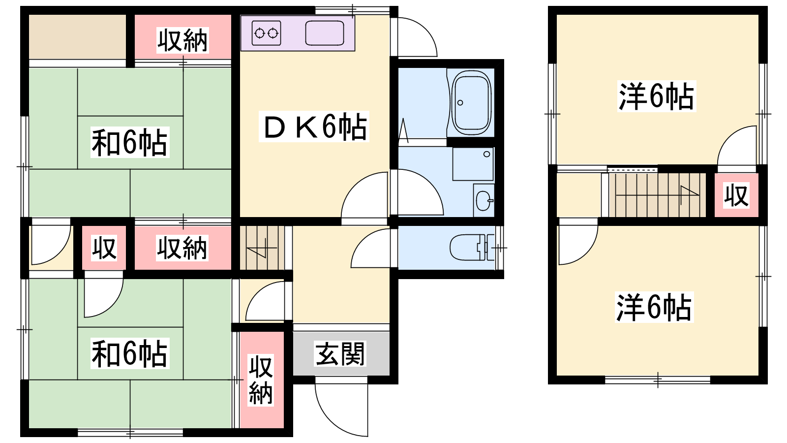 - DK6帖、和室6帖、和室6帖、洋室6帖、洋室6帖