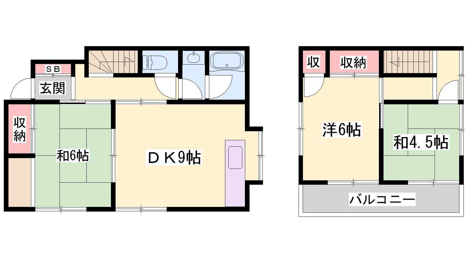 - DK9帖、和室6帖、洋室6帖、和室4.5帖