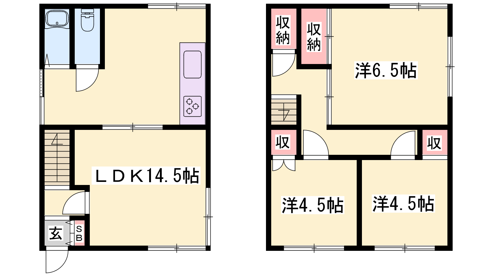 - LDK14.5帖、洋室6.5帖、洋室4帖、洋室4帖