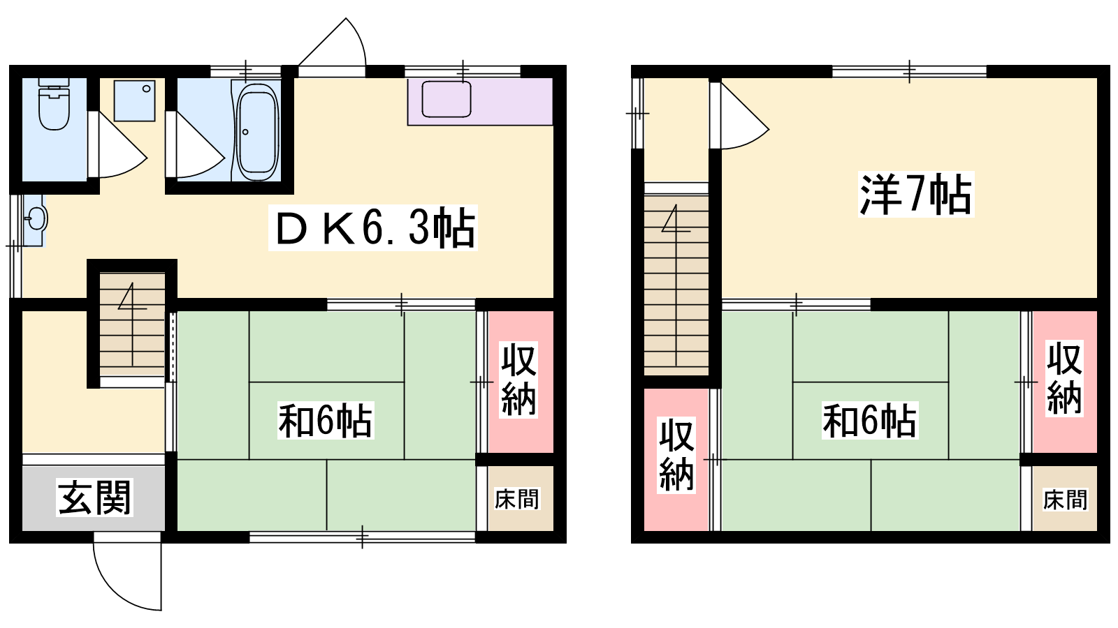 - DK6帖、洋室7帖、和室6帖、和室6帖