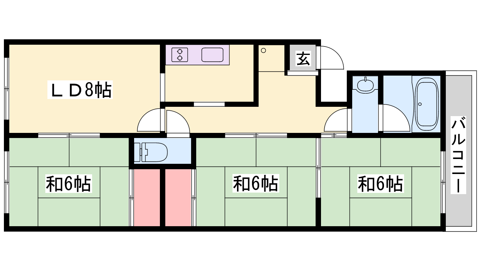 - LDK8帖、和室6帖、和室6帖、和室6帖