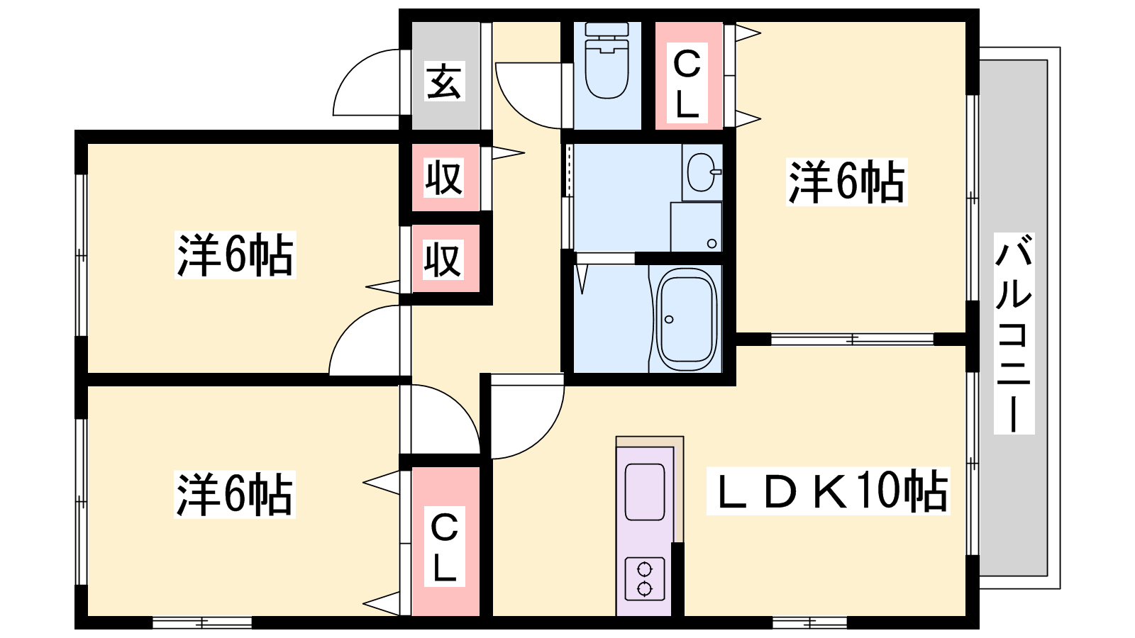 - LDK9.7帖、洋室6帖、洋室6帖、洋室6帖