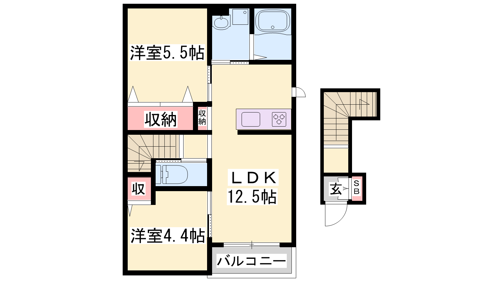 - LDK12.2帖、洋室5.5帖、洋室4.4帖