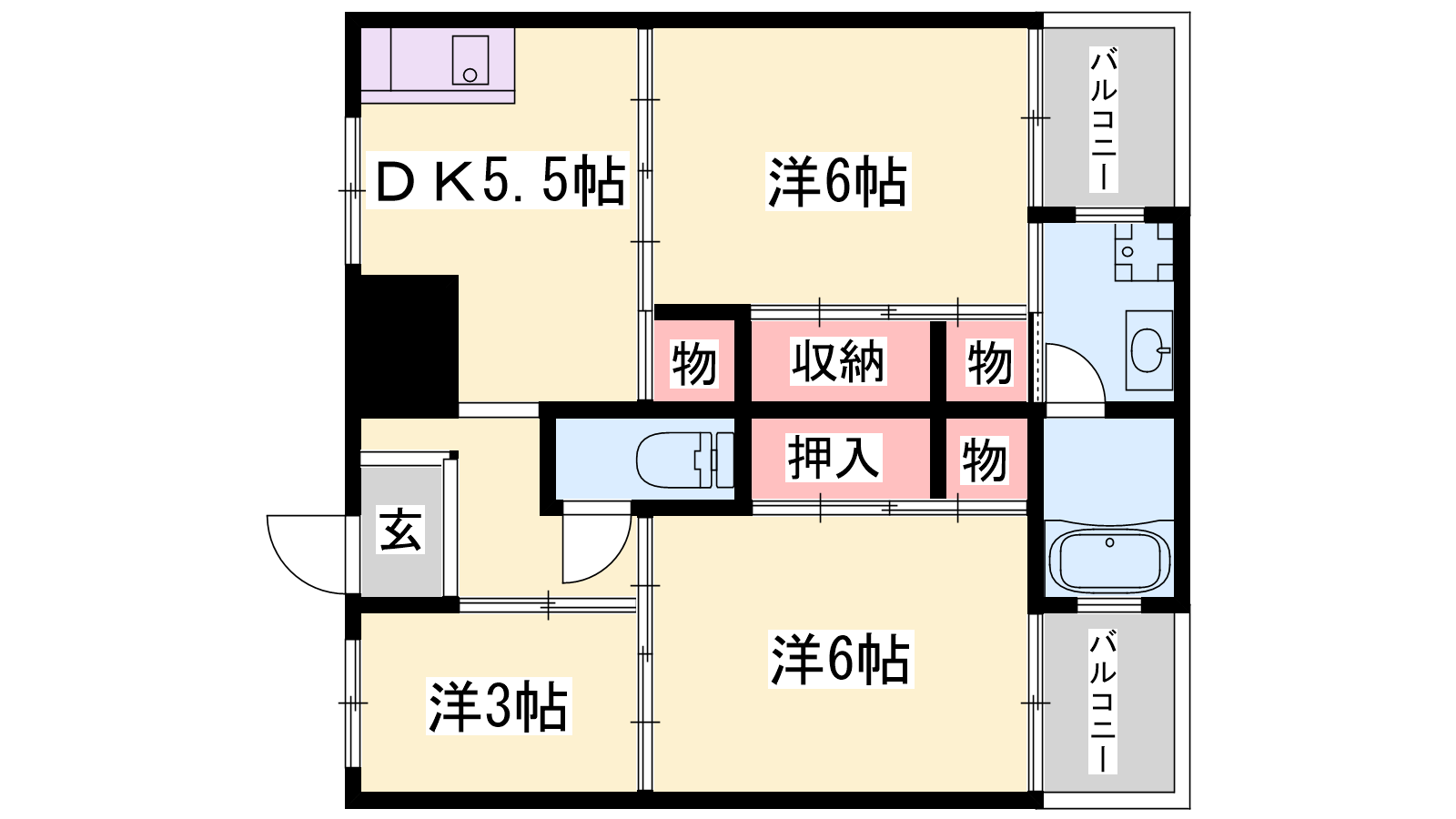 - DK5.5帖、洋室6帖、洋室6帖、洋室3帖