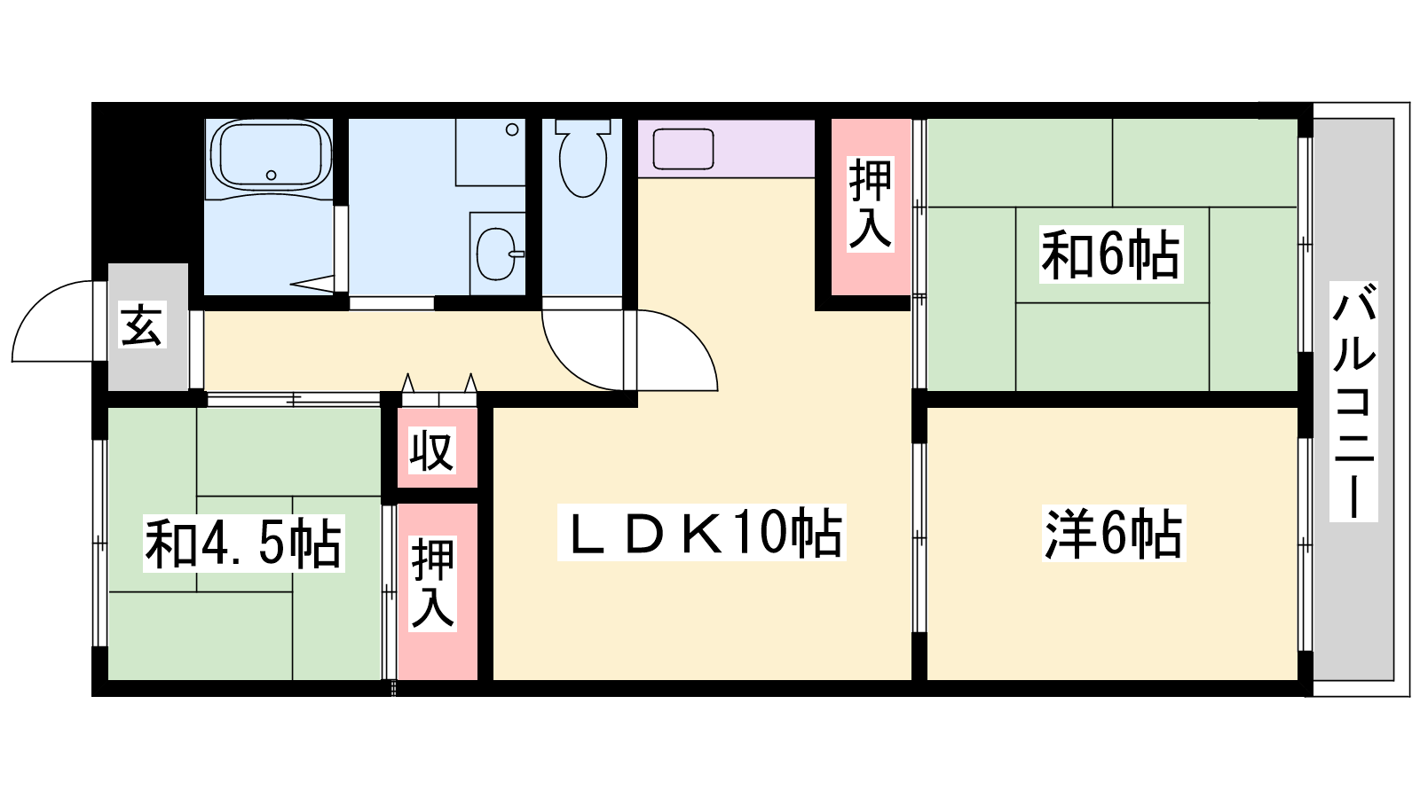 - LDK10帖、洋室6帖、和室6帖、洋室4.5帖