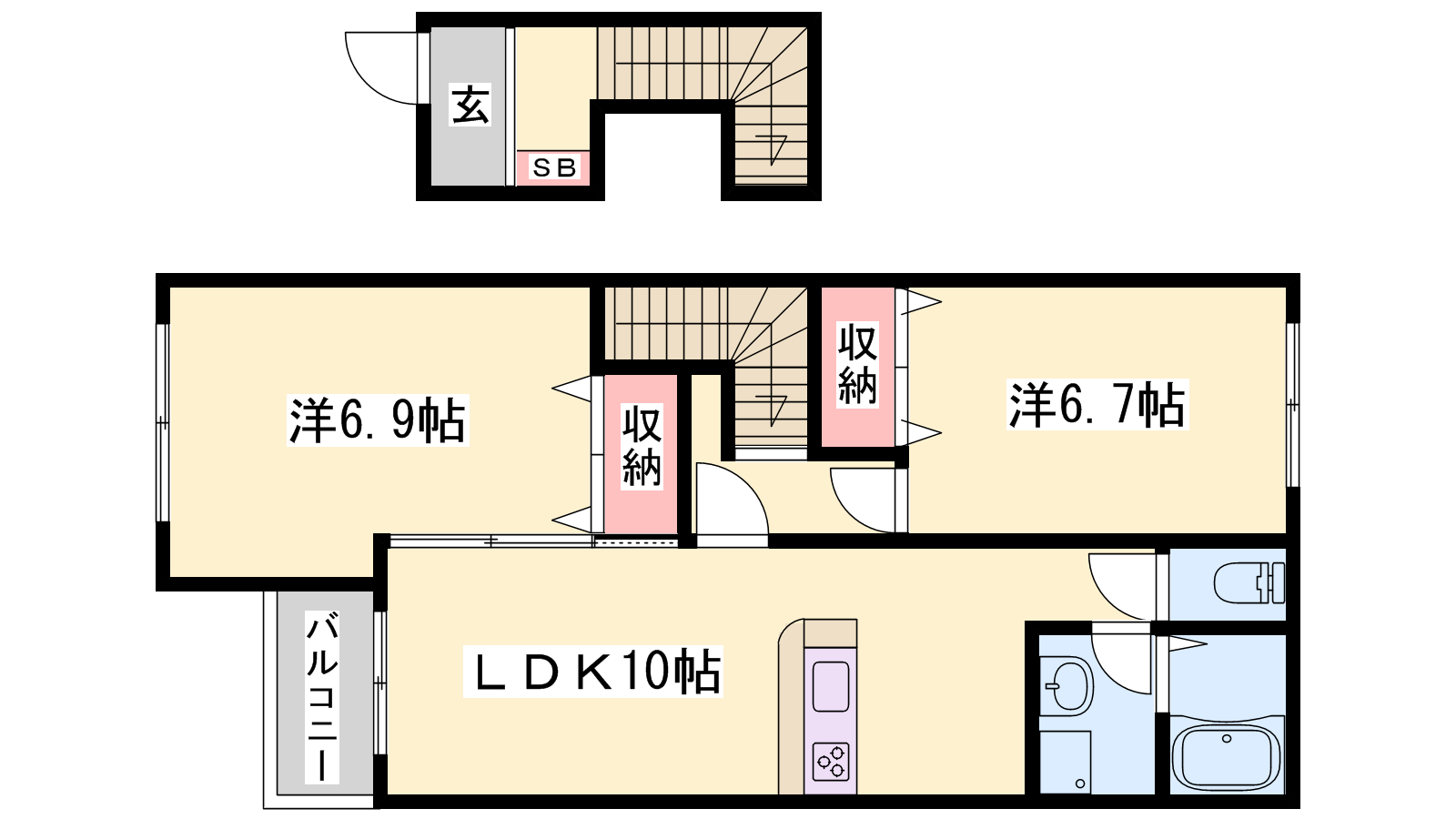 - LDK10帖、洋室6.9帖、洋室6.7帖