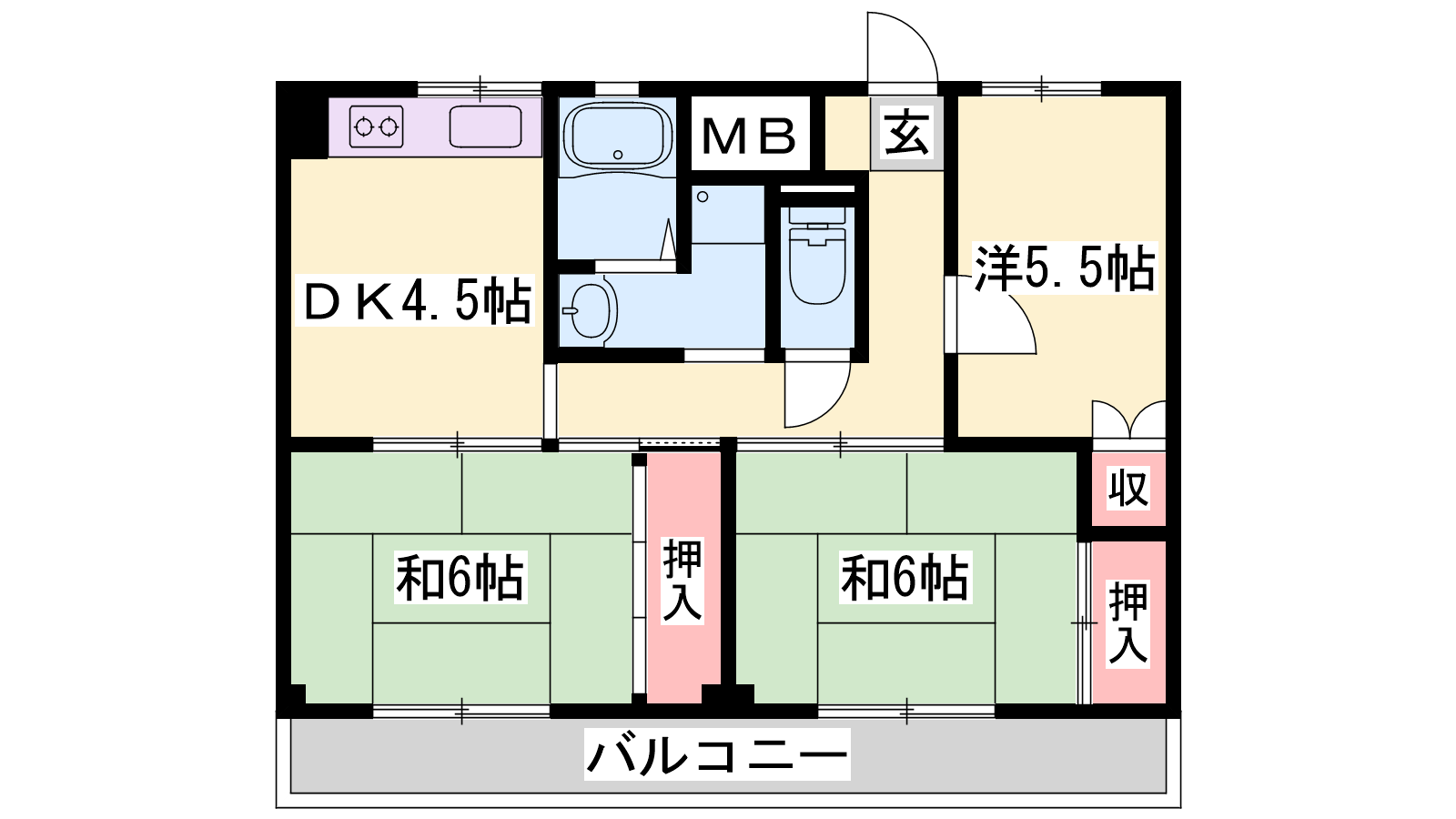 - DK4.5帖、洋室5.5帖、和室6帖、和室6帖