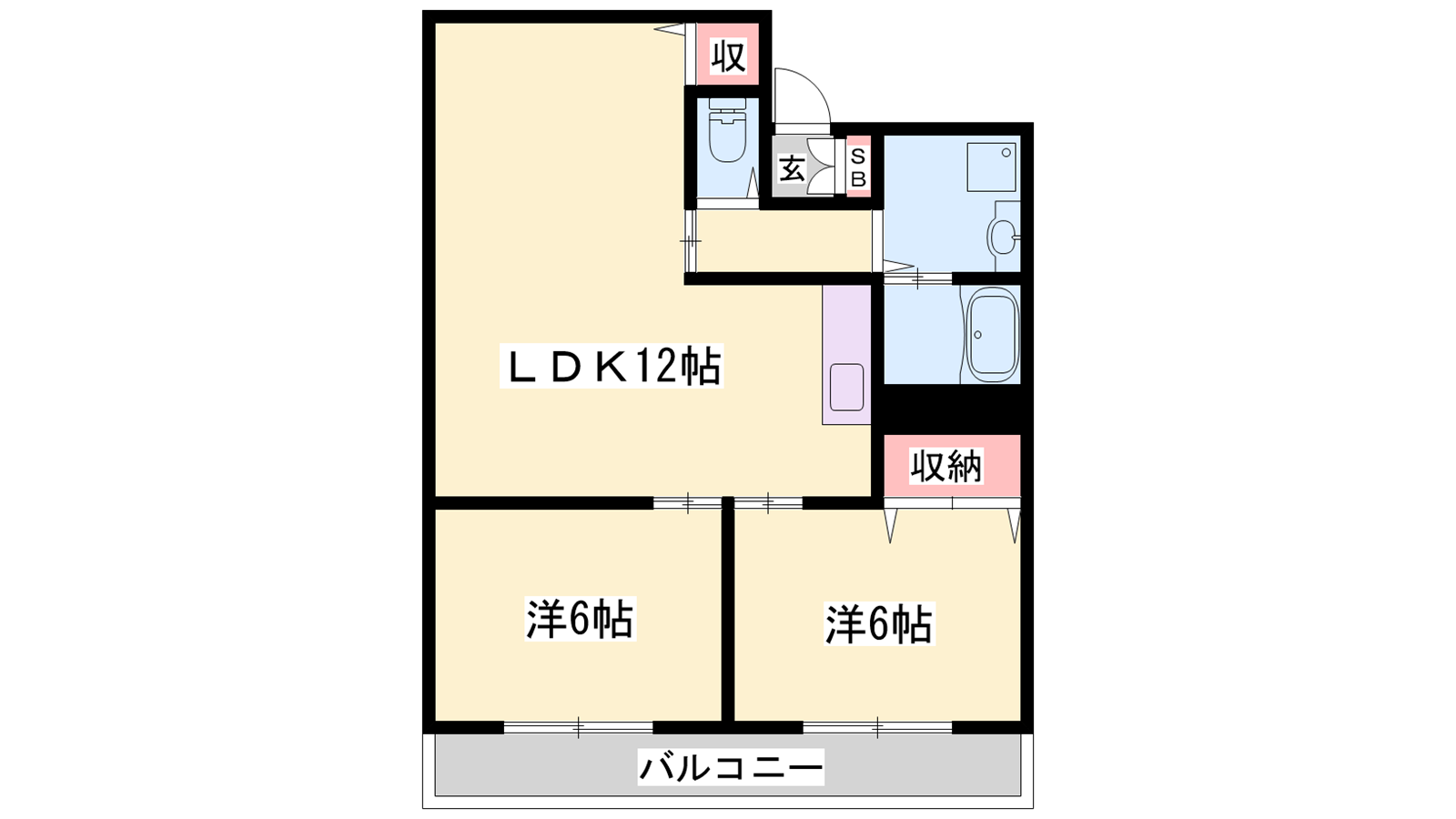 - LDK12帖、洋室6帖、洋室6帖