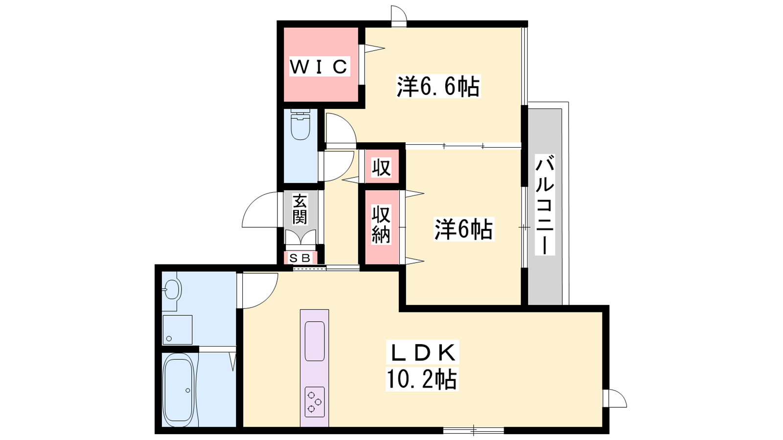 - LDK10.2帖、洋室6.6帖、洋室6帖