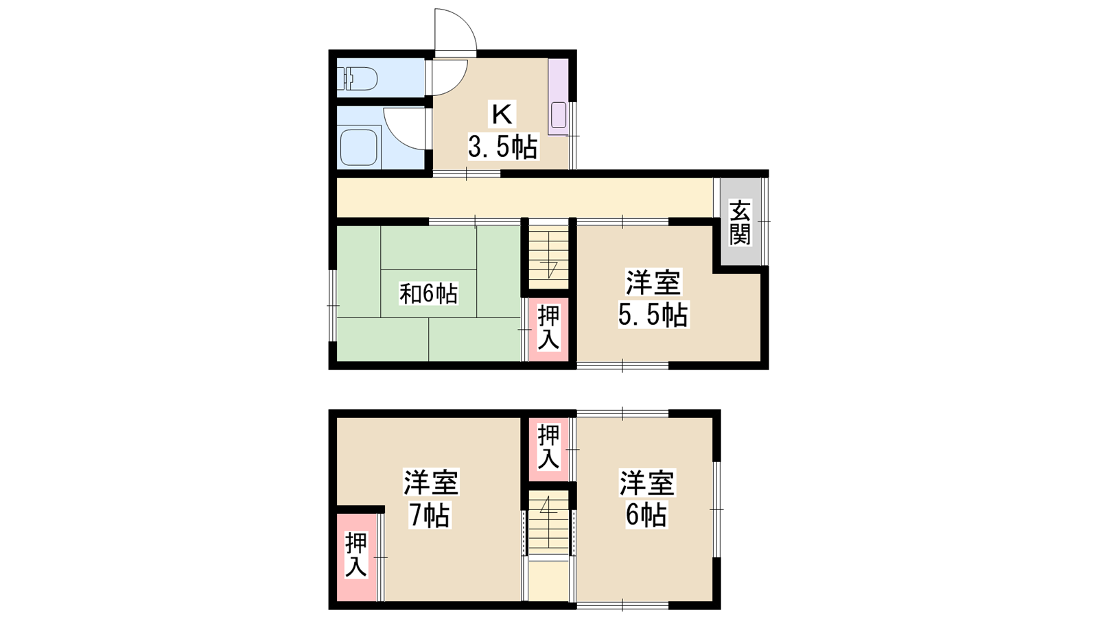 - 洋室7帖、洋室6帖、和室6帖、洋室5.5帖、K3.5帖