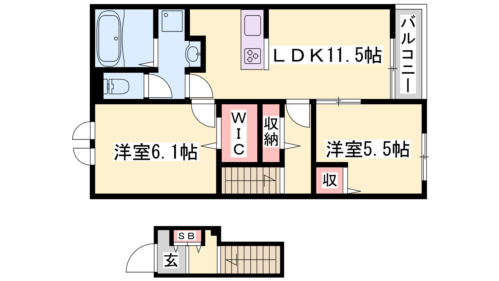 - LDK10.3帖、洋室6.1帖、洋室5.5帖