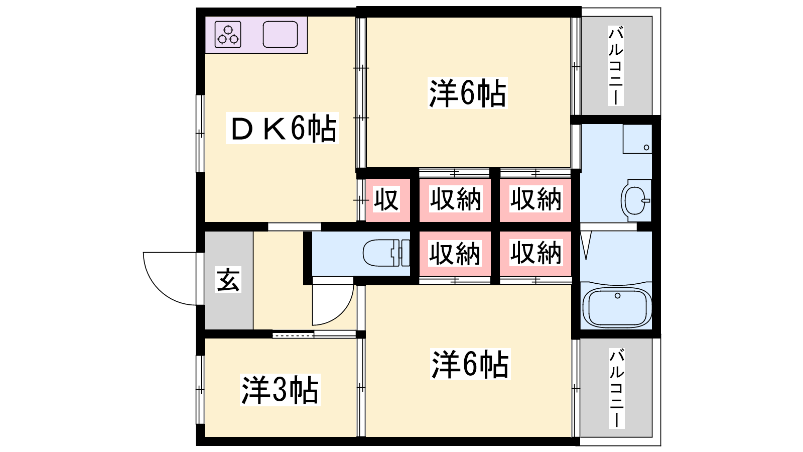 - DK6帖、洋室6帖、洋室6帖、洋室3帖