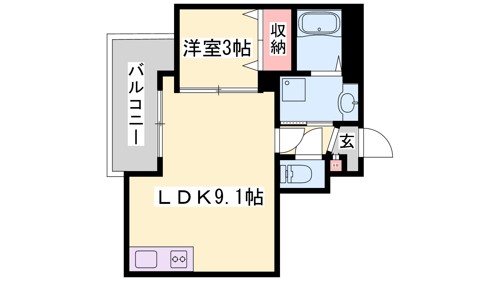 - LDK9.1帖、洋室3帖