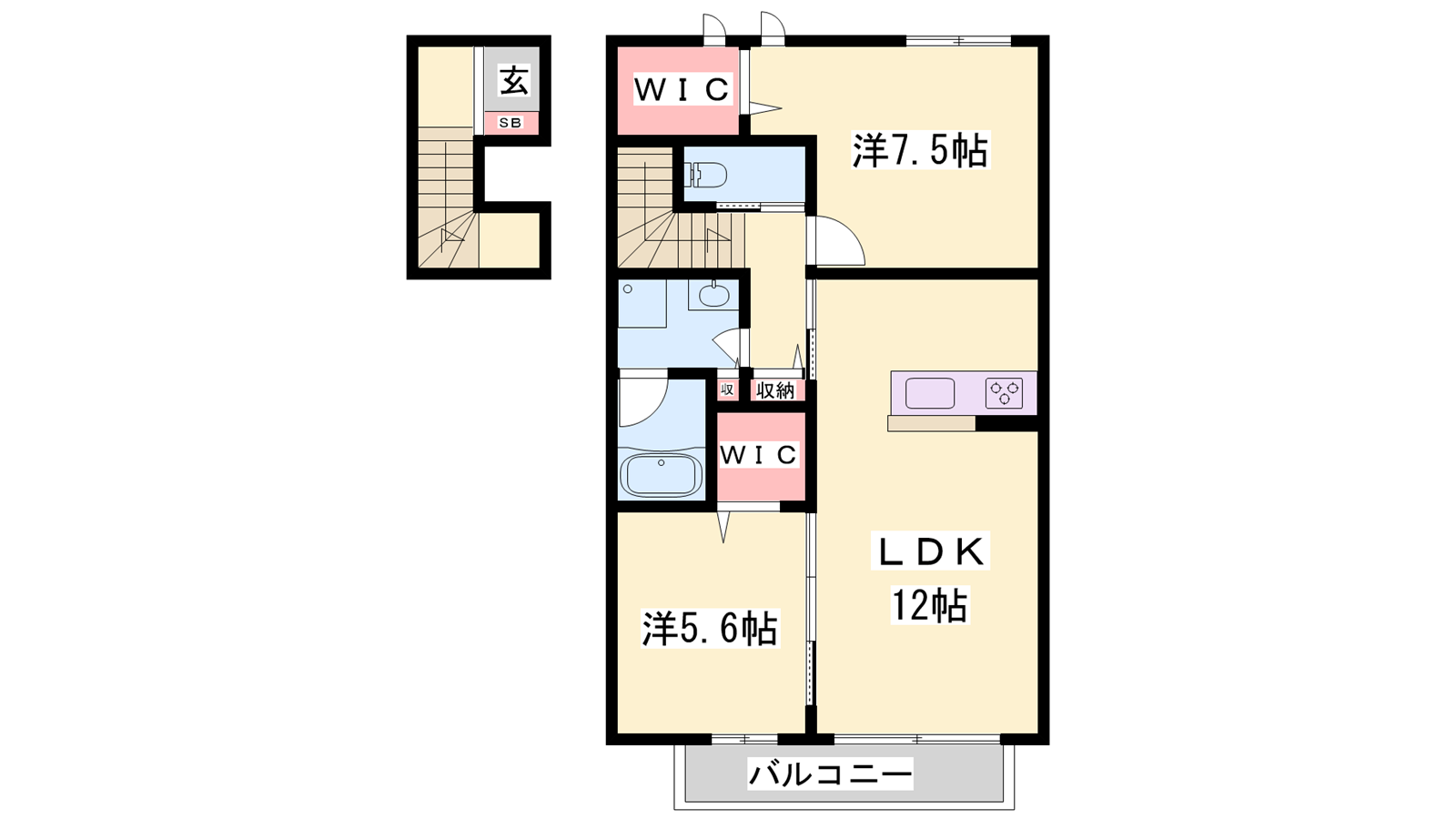 - LDK12帖、洋室7.5帖、洋室5.6帖