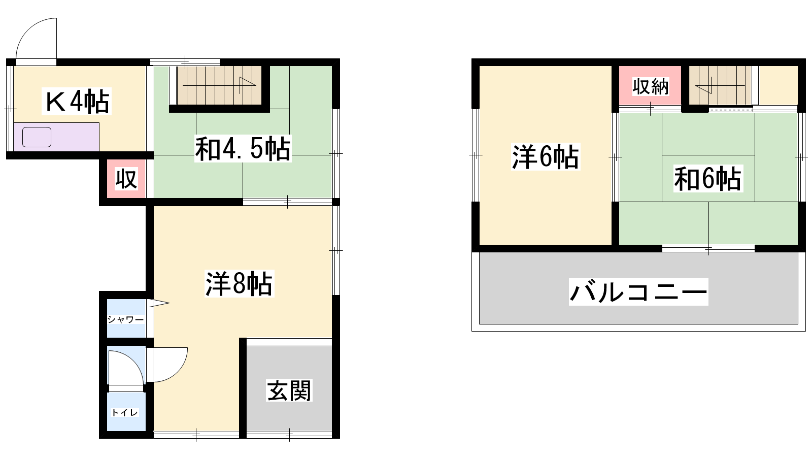 - K4帖、洋室8帖、洋室6帖、和室6帖、和室4.5帖