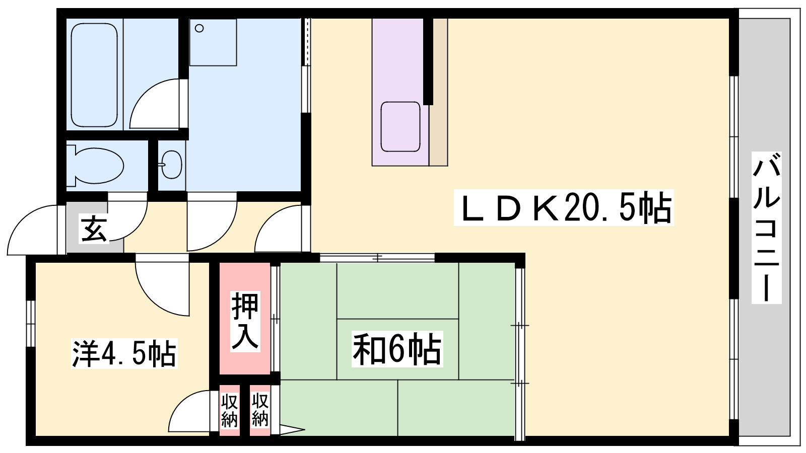 - LDK20.5帖、洋室4.5帖、和室6帖