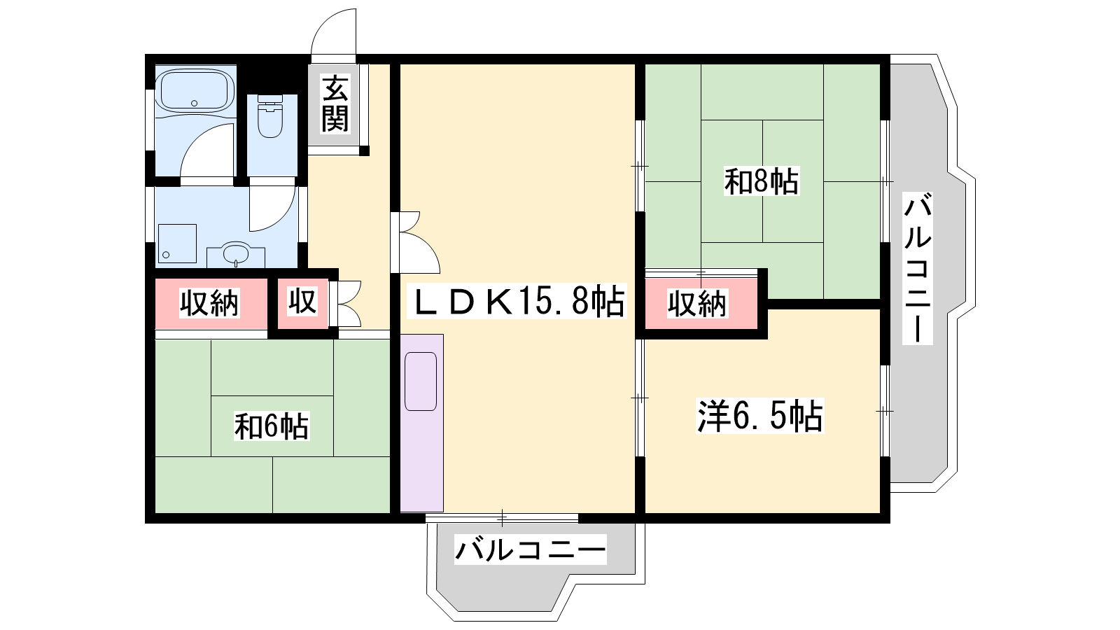 - LDK15.8帖、洋室6.5帖、和室8帖、和室6帖