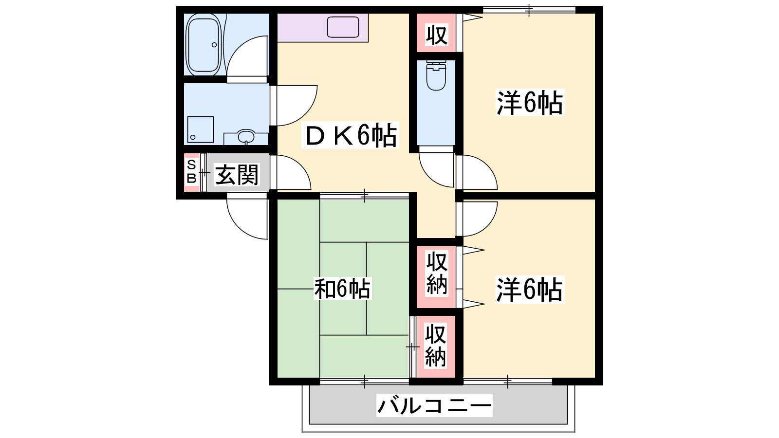 - DK6帖、洋室6帖、洋室6帖、洋室6帖