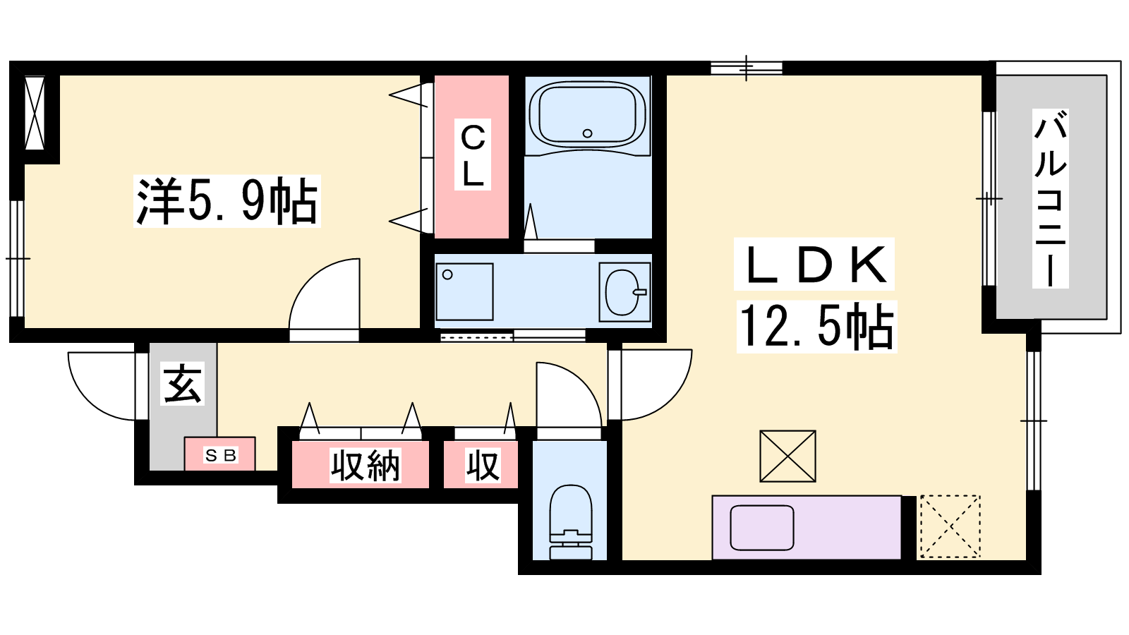 - LDK12.5帖、洋室5.9帖