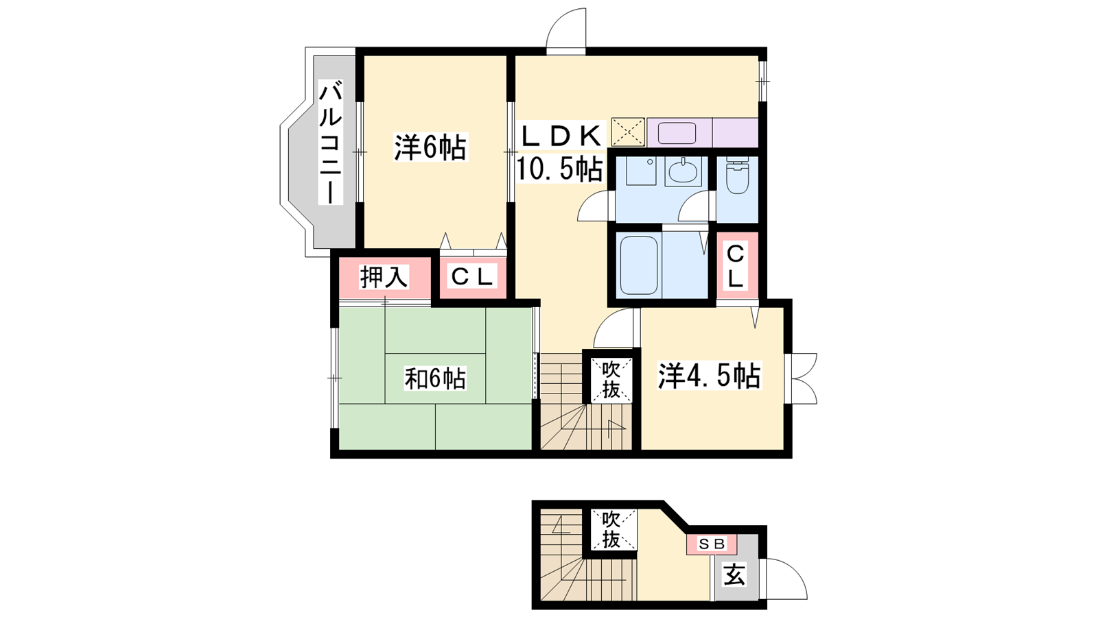 - LDK10.5帖、洋室6帖、洋室4.5帖、和室6帖