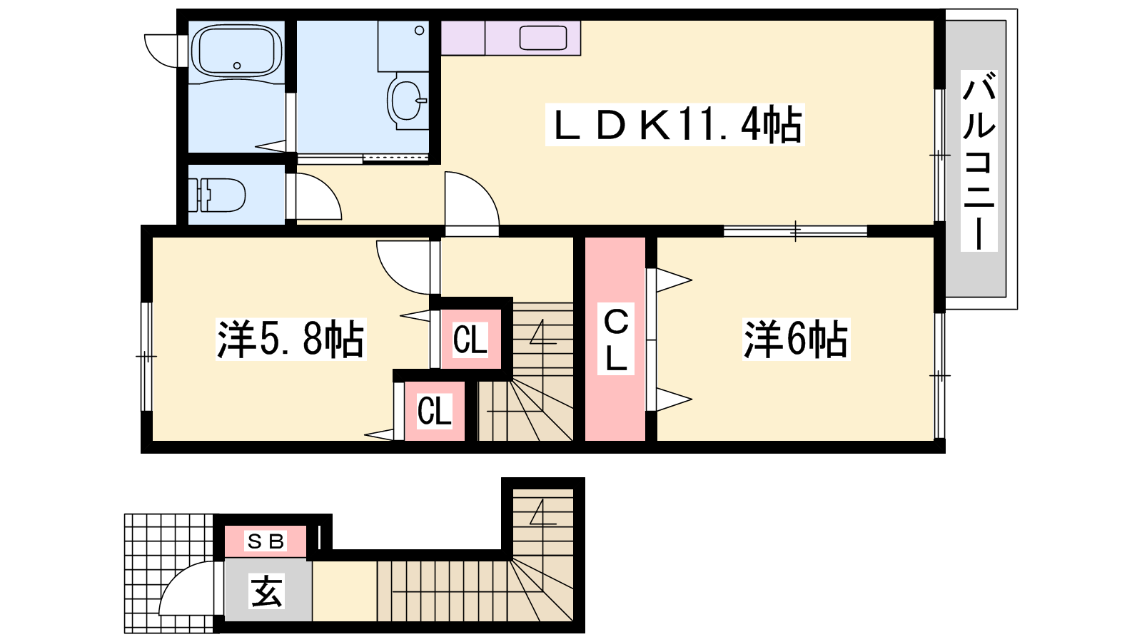 - LDK11.4帖、洋室6帖、洋室5.8帖