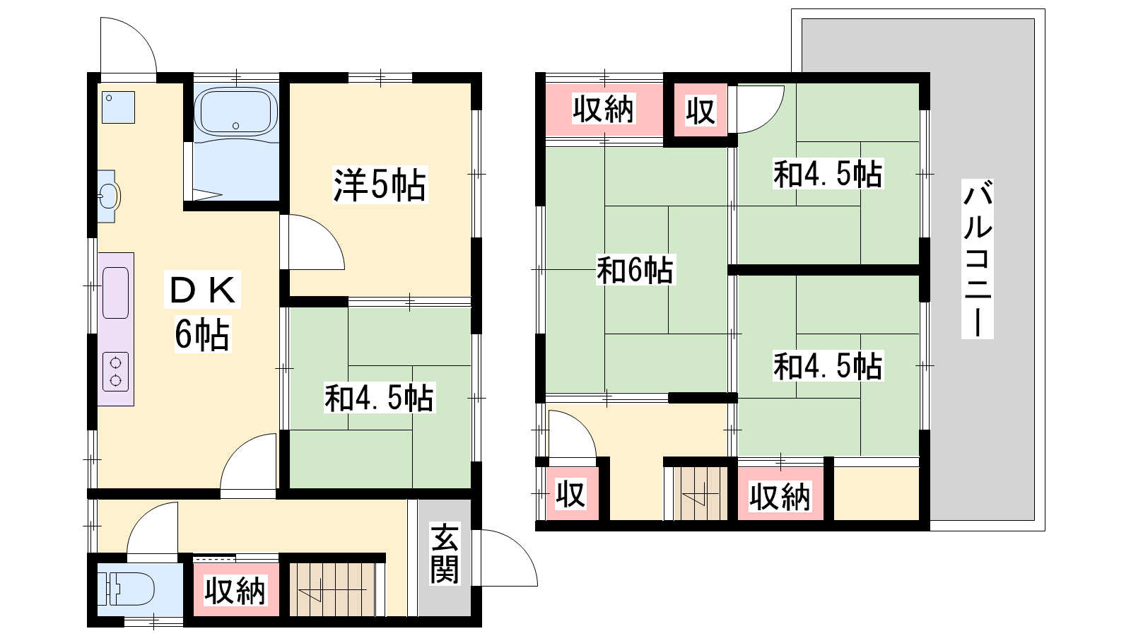 - DK6帖、洋室5帖、和室6帖、和室4.5帖、和室4.5帖、和室4.5帖