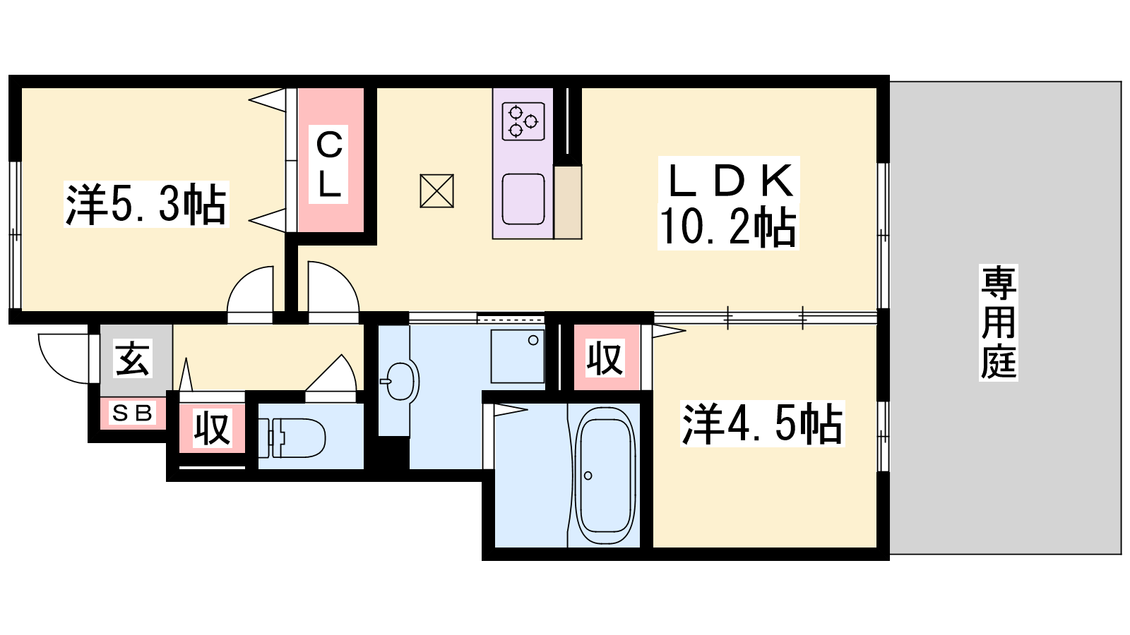 - LDK10.2帖、洋室5.3帖、洋室4.5帖