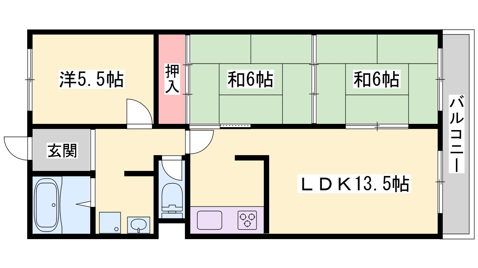 - LDK15帖、和室6帖、和室6帖、洋室5.5帖
