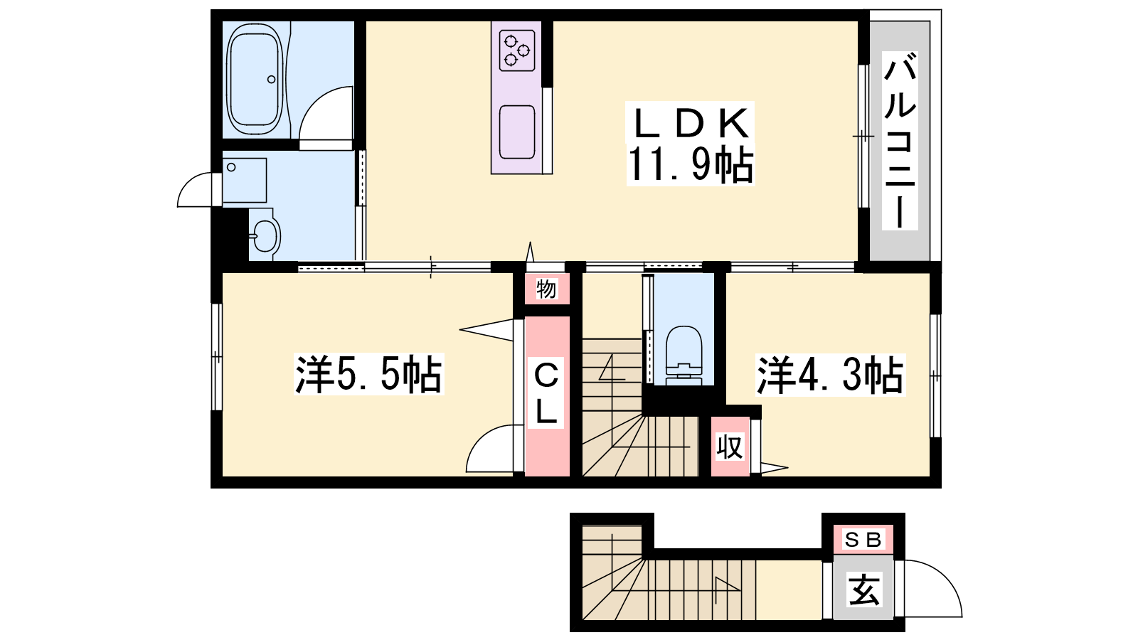 - LDK11.9帖、洋室5.5帖、洋室4.3帖