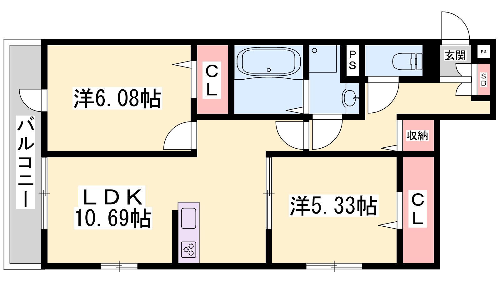 - LDK10.69帖、洋室6.08帖、洋室5.33帖