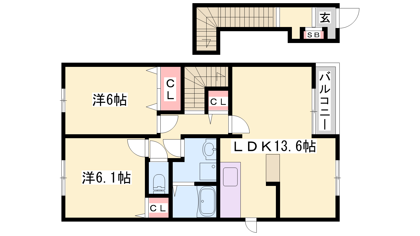 - LDK13.6帖、洋室6.1帖、洋室6帖
