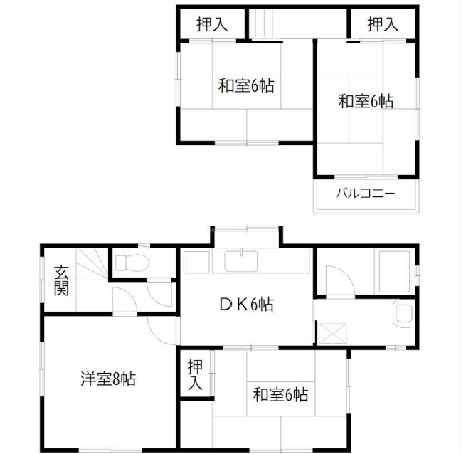 - DK6帖、洋室8帖、和室6帖、和室6帖