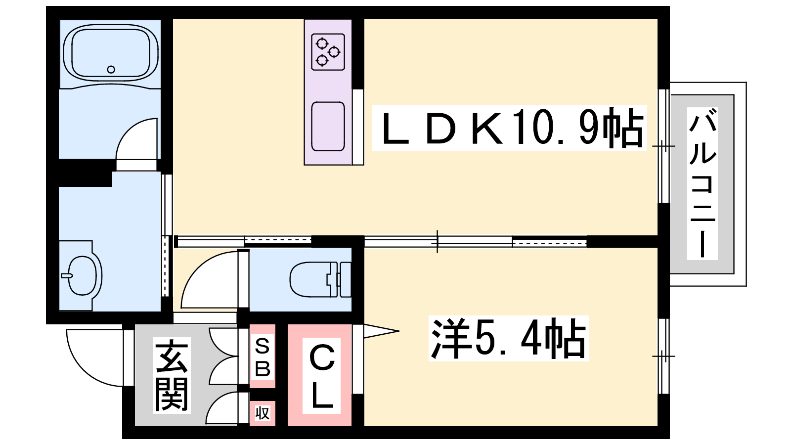 - LDK10.9帖、洋室5.4帖