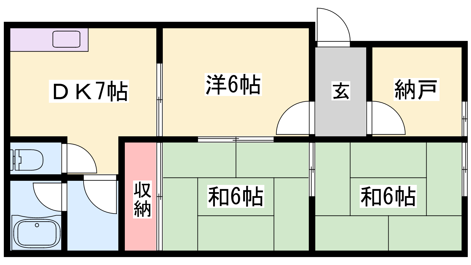 - DK7帖、洋室6帖、和室6帖、和室6帖