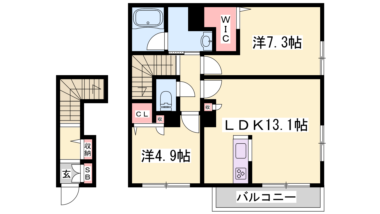 - LDK13.1帖、洋室7.3帖、洋室4.9帖