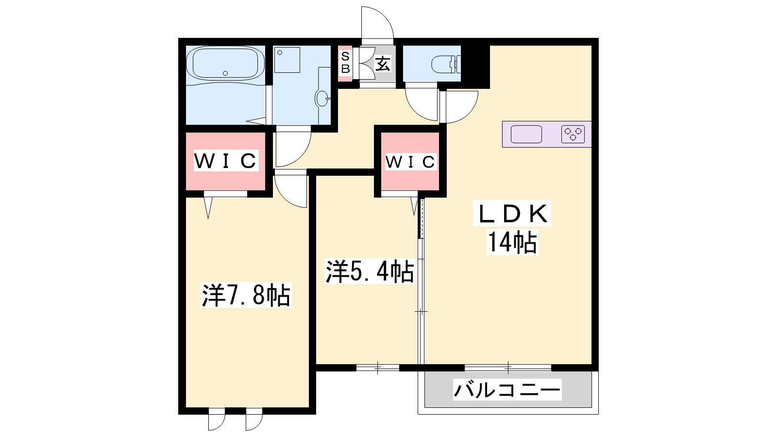 - LDK14帖、洋室7.8帖、洋室5.4帖