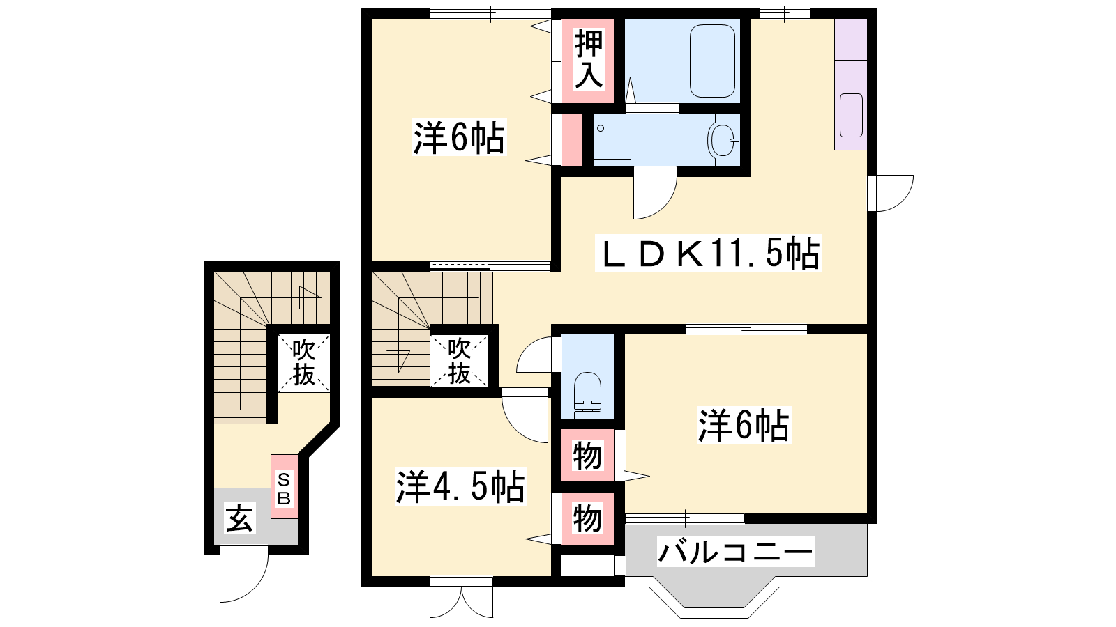 - LDK11.5帖、洋室6帖、洋室4.5帖、洋室6帖