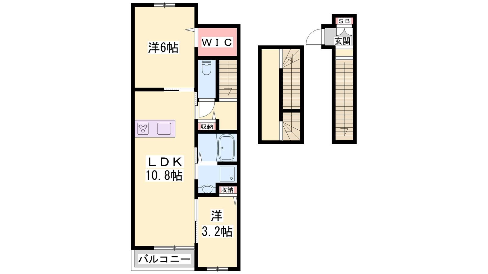 - LDK10.8帖、洋室6帖、洋室3.2帖