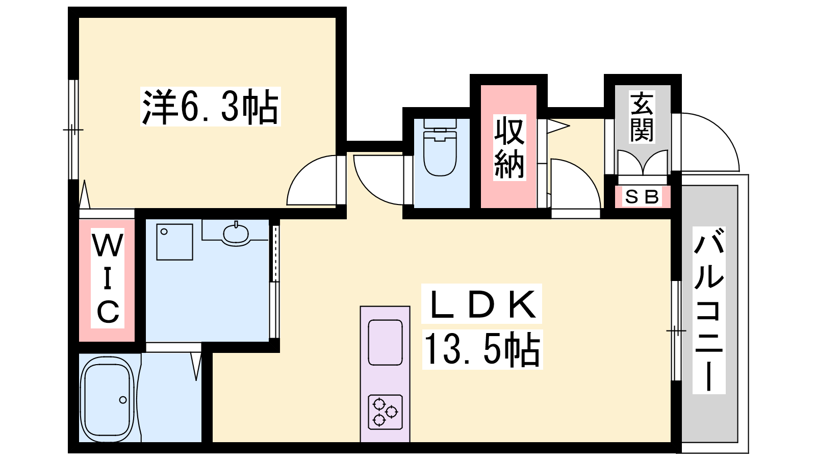 - LDK13.5帖、洋室6.3帖