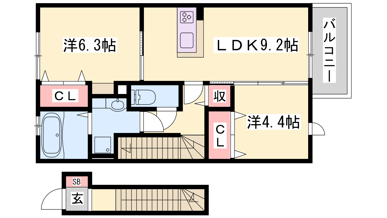 - LDK9.2帖、洋室6.4帖、洋室4.4帖