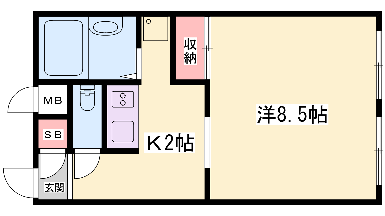 - K2帖、洋室8.5帖