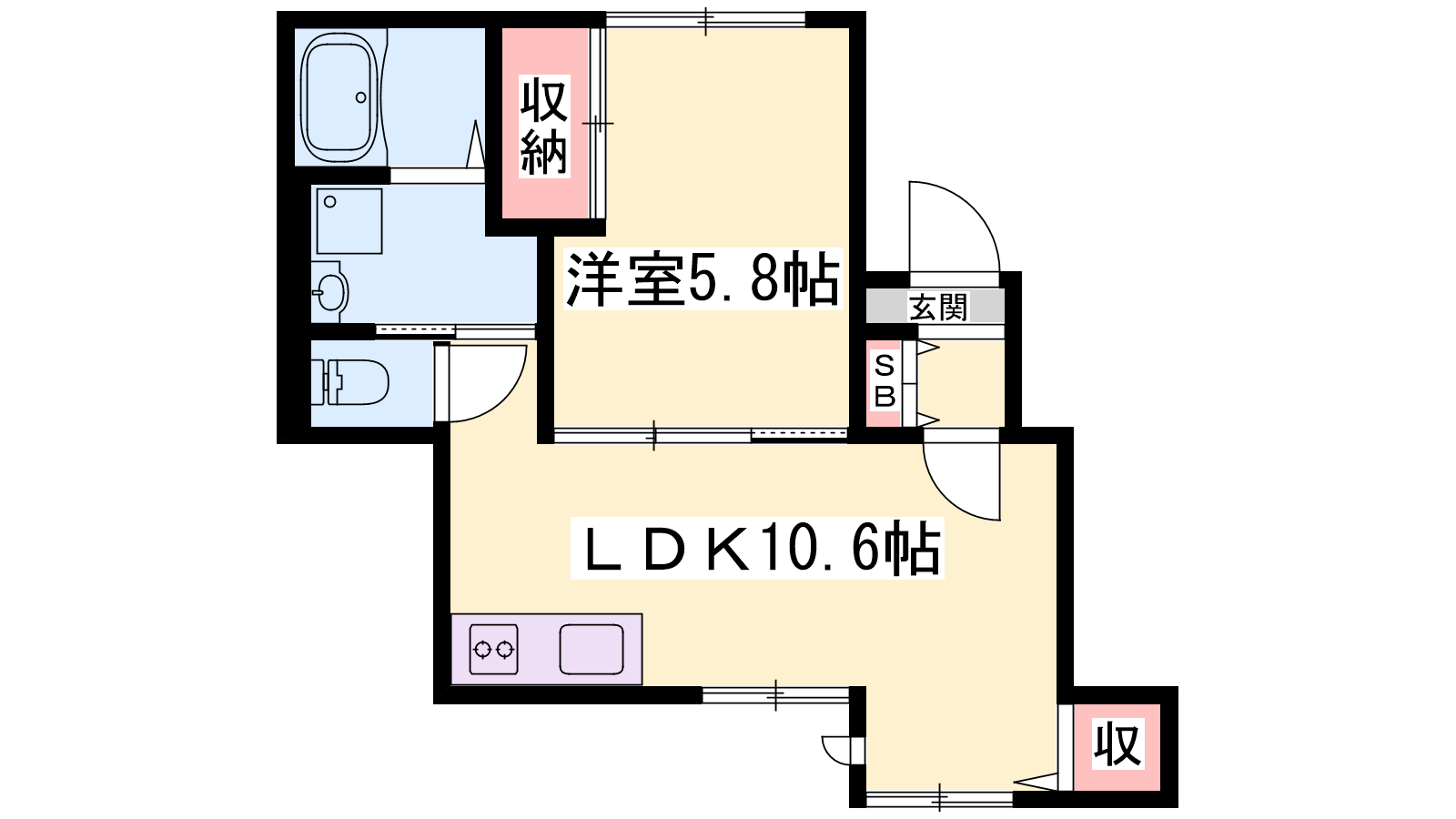 - LDK10.6帖、洋室5.8帖