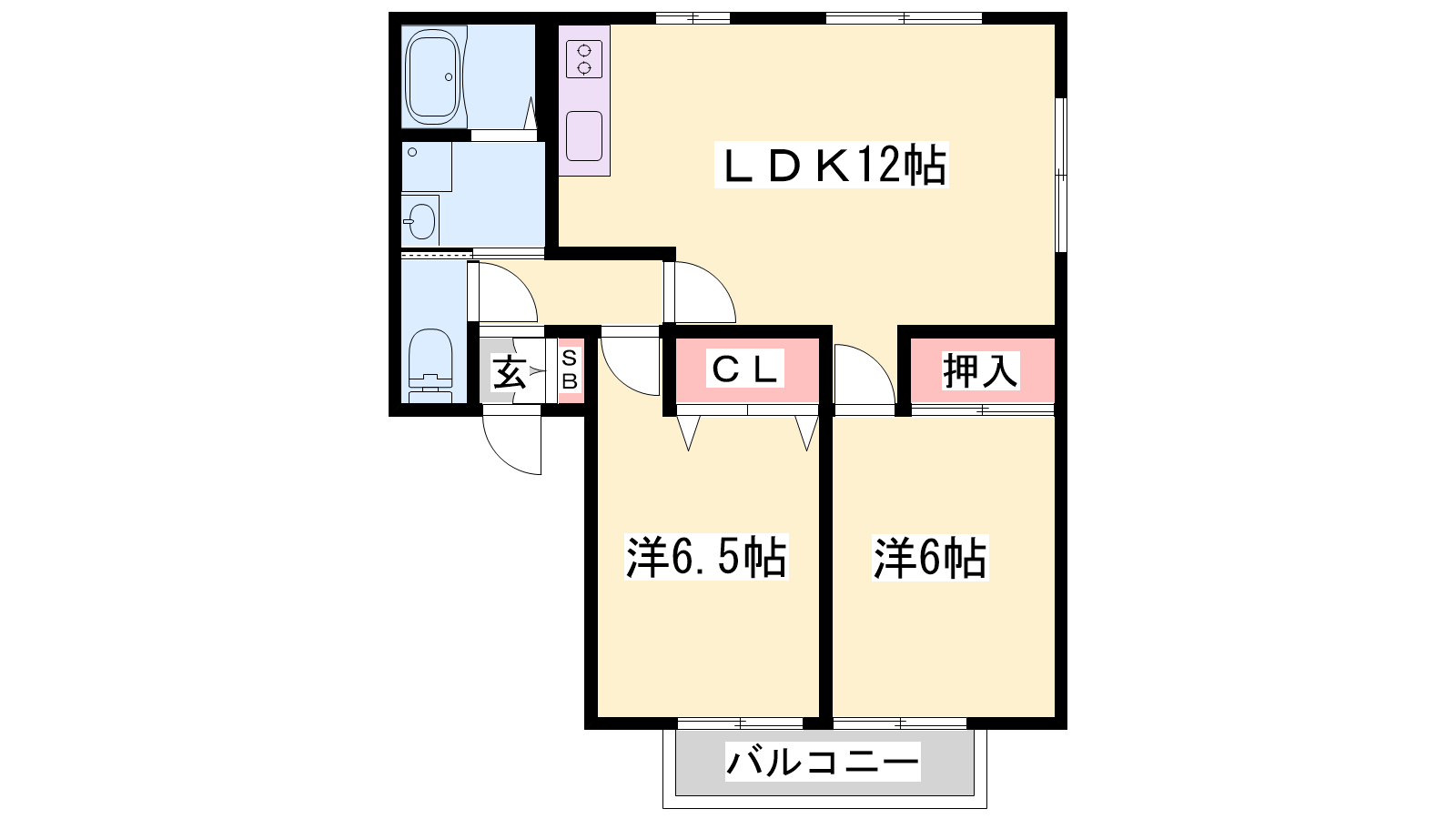 - LDK12帖、洋室6.5帖、洋室6帖