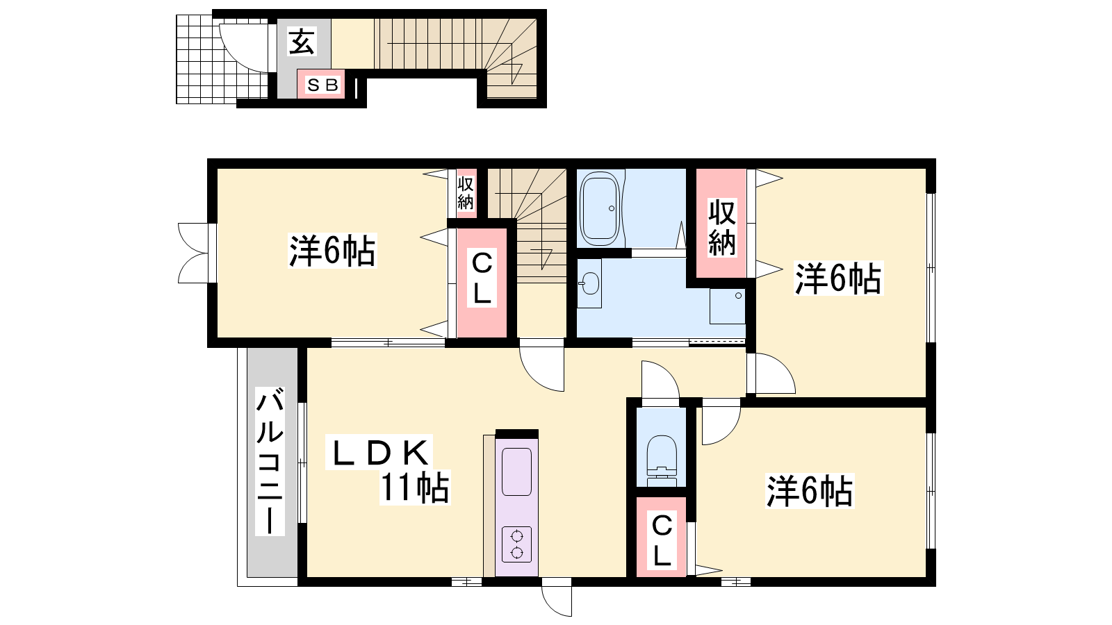 - LDK11帖、洋室6帖、洋室6帖、洋室6帖