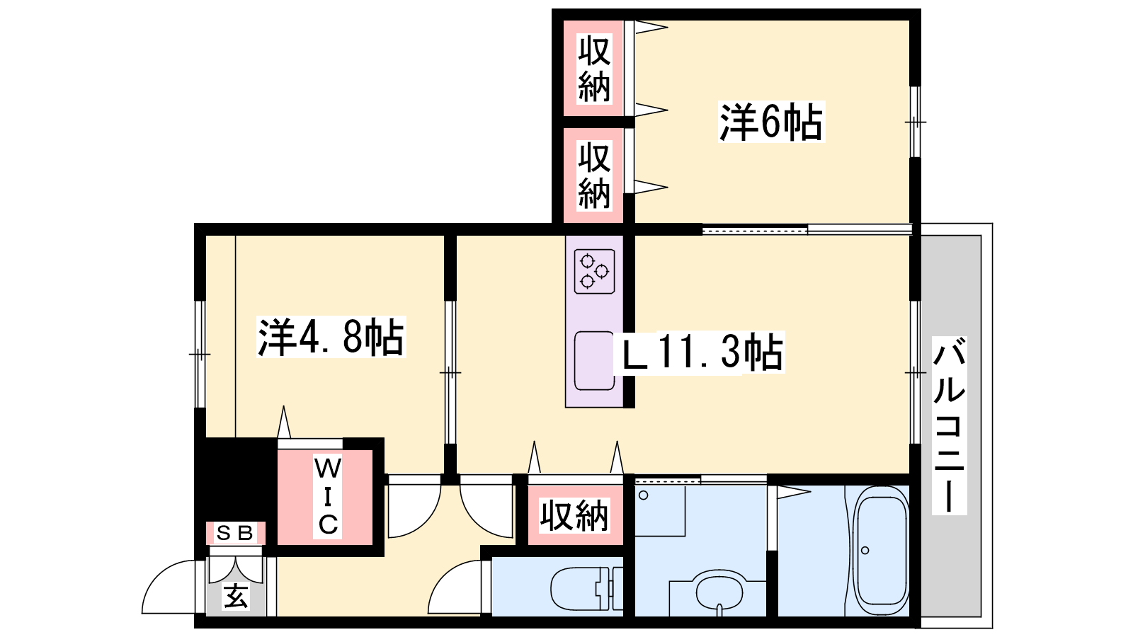 - LDK11.3帖、洋室6帖、洋室4.8帖