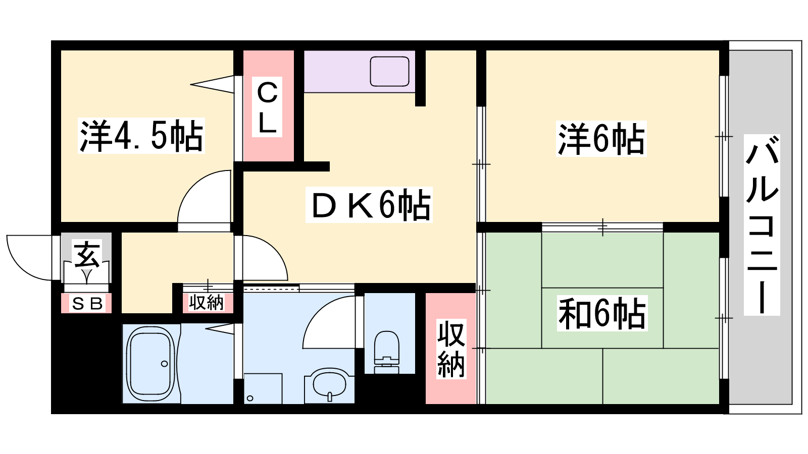- DK6帖、洋室6帖、洋室4.5帖、和室6帖