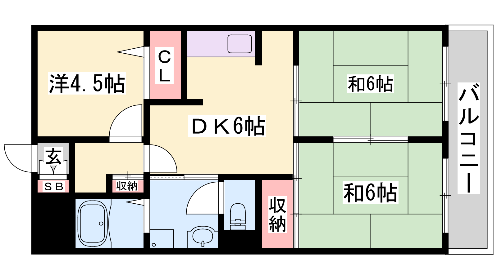 - DK6帖、洋室4.5帖、和室6帖、和室6帖