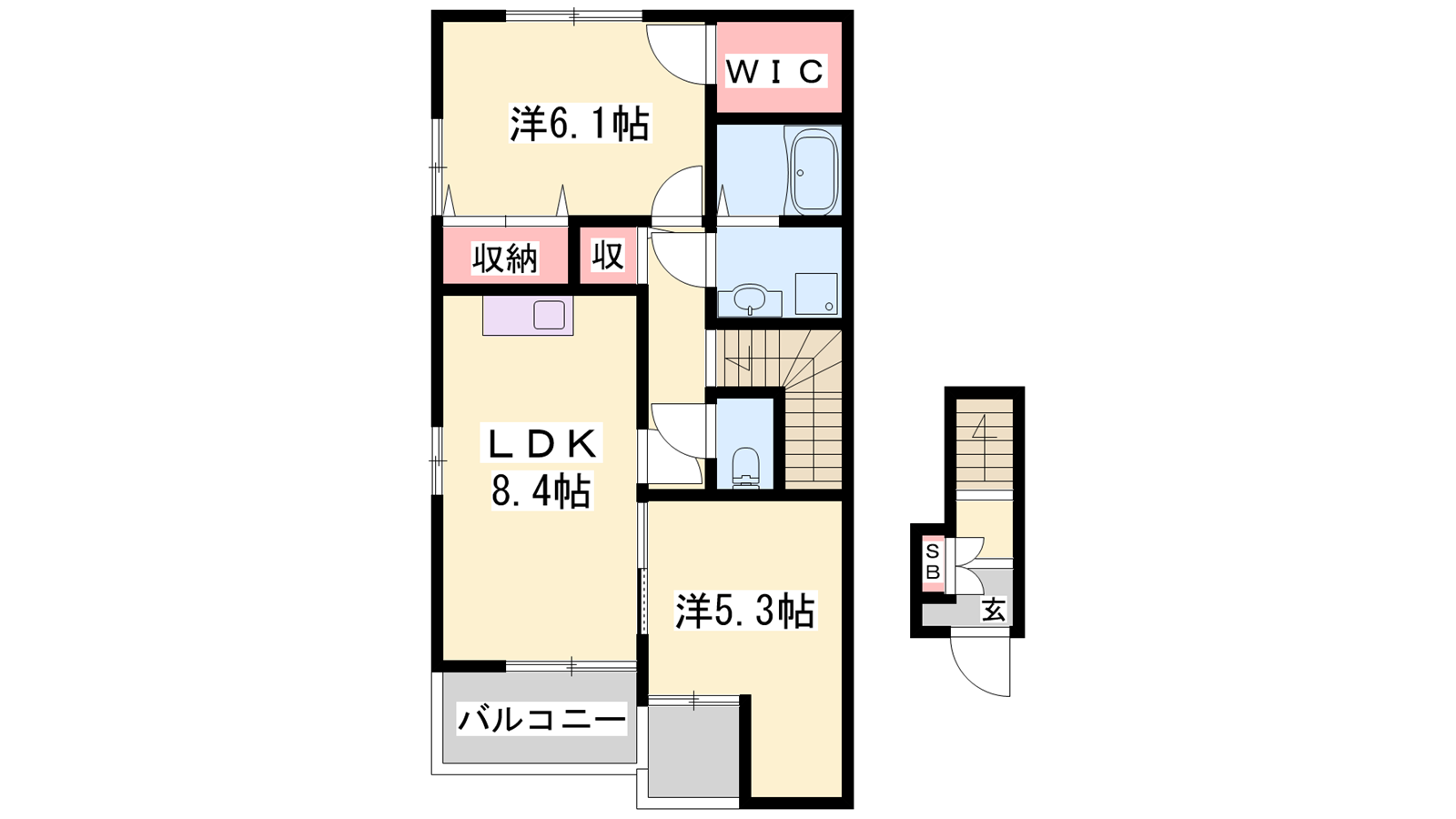 - DK8.4帖、洋室6.1帖、洋室5.3帖