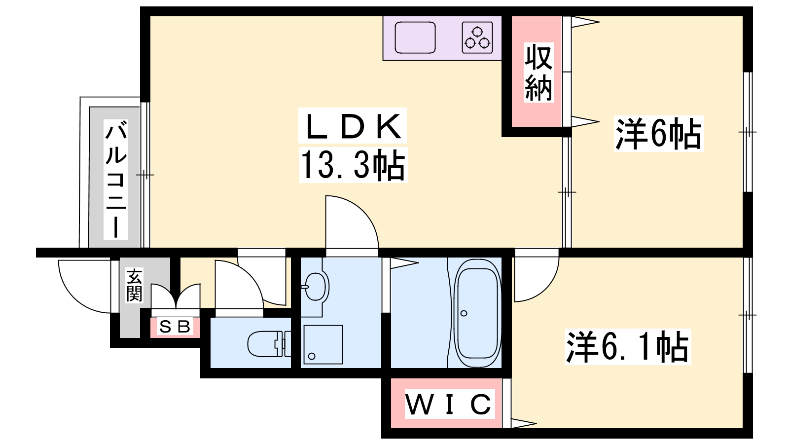- LDK13.3帖、洋室6.1帖、洋室6帖